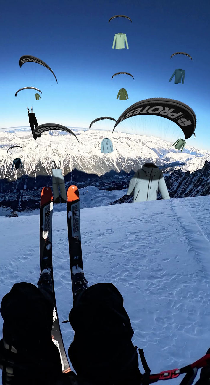 This FOOH (Fake-Out-of-Home) project for Protest Sportswear, created in partnership with French freeride snowboarder Camille Armand, was showcased during the premiere of Pachamama at the Freeride Film Festival on Friday 29th, 2024, and generated over 25K views on Instagram. The campaign aimed to present Protest’s latest collection through a visually immersive and unconventional narrative. The concept featured garments attached to paragliders, offering a first-person perspective of Camille Armand flying through the scene mid-air.